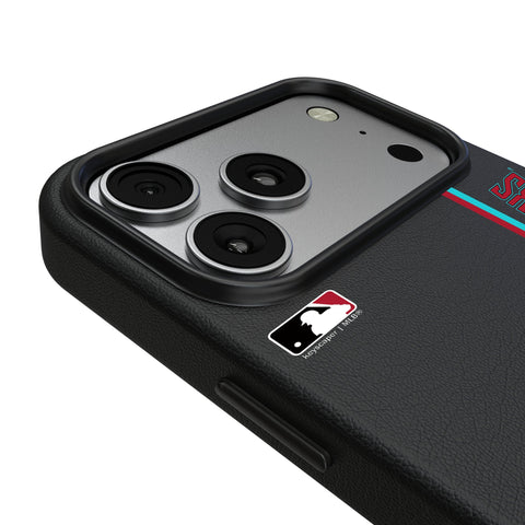 This premium black leatherette case sports an officially-licensed design and is MagSafe compatible. Designed and decorated by Keyscaper in Tualatin, Oregon, USA., this stylish cell phone case is a great way to show off your true fandom. Striking a great balance between bulk and protection, it is durable, has precise speaker and port cutouts, and is compatible with wireless charging devices.
