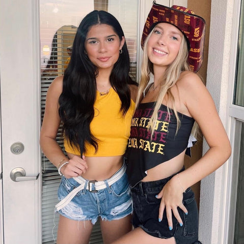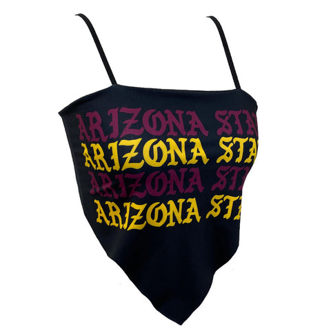 The must have top for all Arizona State Sun Devils! Our super flattering ASU Tie Top is the perfect top for all occasions. With double lining and and an adjustable tie back, this top provides side coverage and a second layer of lining to make this a perfect fit! Stretchy shoulder straps make this top one of a kind and perfect for all day long.