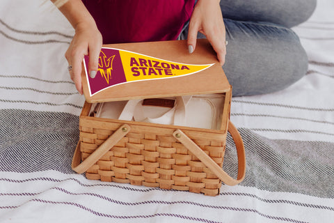 Sure, a picnic for two is nice, but flying solo? That can be even more fun - especially when you’ve got the Arizona State Sun Devils Poppy Personal Picnic Basket in tow! This handwoven wicker basket is ideal for bringing a little country charm to your office lunch or for toting drinks and snacks to an outdoor concert. With a fully-removable insulated interior cooler made of easy-clean, water-resistant material and a removable lid, this small picnic basket perfectly brings together vintage styling with modern conveniences. Why shouldn’t every lunch hour be as delightful as a picnic?