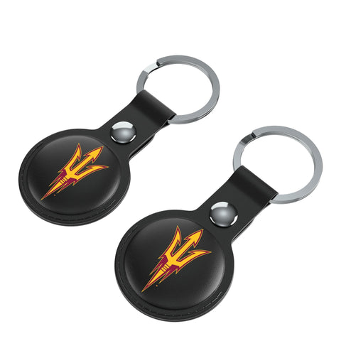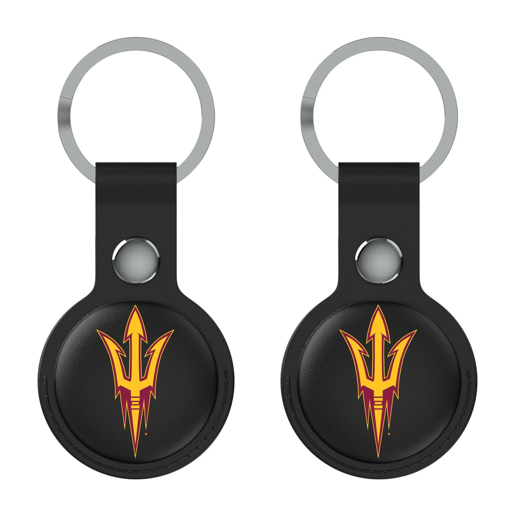This officially-licensed black leatherette case for AirTag with key ring is a must have for all fans. Comes in a 2-pack, so you can show your fan spirit on multiple keyrings or match with your buddy. Designed to fit seamlessly with your AirTag, these holders add a vibrant touch to your keychain, bag, backpack, pet collar, suitcase and more. These premium leatherette holders with full color print not only shield your AirTags but also proudly showcases your favorite officially-licensed design. Designed and decorated by Keyscaper in Tualatin, Oregon, USA.