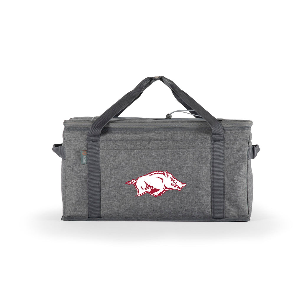 Headed to a big tailgate? Camping with a group? Snack parent for a thirsty crew? Enter the Arkansas Razorbacks 64 Can Collapsible Cooler, an insulated soft beverage tote with seriously big capacity! This soft-sided, insulated picnic tote features a water-resistant interior and easily compacts for storage or post-party transport. When you’re through all 64 cans, just secure it to a large pack with the included securable bungee cord or fold it up into another carrier. Go ahead and pack up more than 5 12-packs or pop in some brews and soda with your full picnic - this insulated cooler tote is versatile, durable, and ready for some action! Keep the bubbly bevs flowing on-the-go while you’re having fun with family and friends with the Arkansas Razorbacks 64 Can Collapsible Cooler