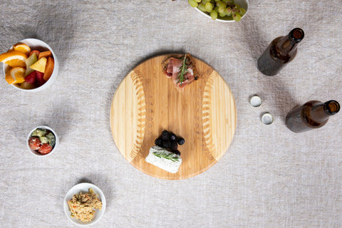 Show your love for America's Pastime with Picnic Time's Homerun! Cutting Board, a bamboo-constructed baseball-inspired chopping board that double-plays as a serving platter! Use the blank underside for chopping and the "stitched" topside for serving. Sure to be a grand slam at your next dinner party! The baseball puns are endless!