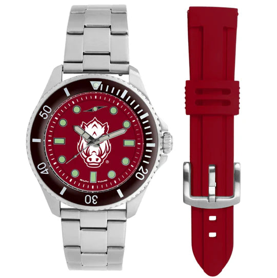 You’re no Fairweather Razorbacks fan, you’re a diehard who shows your pride every minute you can. That level of passion deserves an equally impressive timepiece that inspires your team spirit every second until game day. It’s time for the Arkansas Razorbacks Men’s Contender watch from Sun Time.