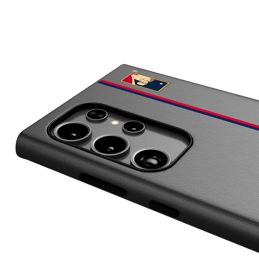 This premium black leatherette case sports an officially-licensed design and is MagSafe compatible. Designed and decorated by Keyscaper in Tualatin, Oregon, USA., this stylish cell phone case is a great way to show off your true fandom. Striking a great balance between bulk and protection, it is durable, has precise speaker and port cutouts, and is compatible with wireless charging devices.
