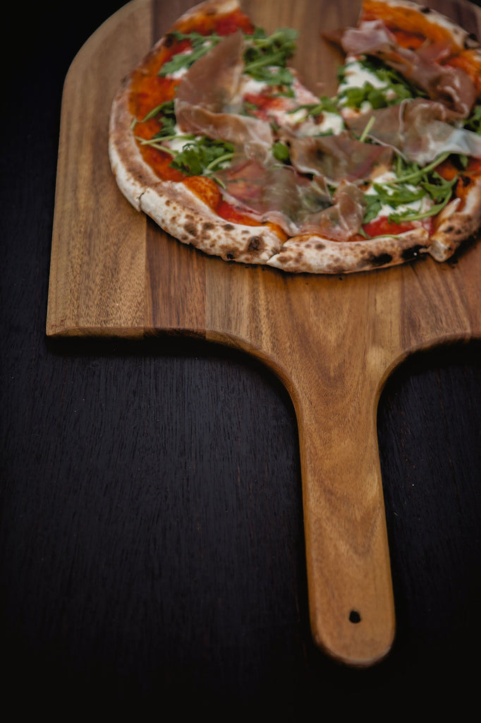There is perhaps no food more universally beloved than pizza, the great equalizer. If you’re holding a pizza party at home, make sure you have the highest quality tools for the job with a wooden baking peel. The Acacia Wood Pizza Peel is a pro-grade pizza board with a beveled edge to make it easier to transfer pizzas and bread in & out of the oven (or your fancy wood-fired pizza oven!). With a tapered handle for a steady and comfortable grip, and the beautiful natural acacia wood grain, this pizza paddle looks equally lovely on the table or hanging in your kitchen. When the pizza party's done, simply surface wash your wood pizza peel with a damp cloth and hang it by the integrated hole in the pizza board handle.