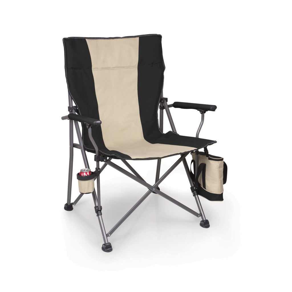 For those of us who are both large and in charge, the Big Bear XL Camp Chair with Cooler is the gold standard of heavy duty folding chairs. Any size person will enjoy the extra room of this plus size adult beach chair with a steel frame, hinged feet for stability on uneven terrain, durable polyester construction, and zippered security pocket behind the headrest. This XL lawn chair also sports a 9-can-capacity cooler bag and drink holder that can attach to the chair. When it’s time to hit the road, easily pack this heavy duty outdoor folding chair into the drawstring tote with a shoulder strap. Show off your team spirit everywhere you go with this chair, adorned with your favorite team's logo across the back. Easy to get in and out of and rated for a high weight capacity of 500 lbs, this is the perfect folding chair for big & tall folks to take to the beach, camping, picnicking, and tailgating!
