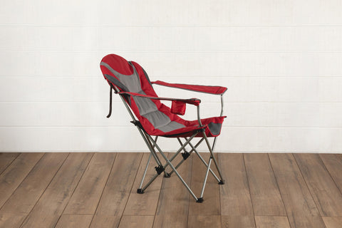 Plush, portable, and packable, the Picnic Time Atlanta Falcons Reclining Camp Chair is your camping cockpit with three reclining positions, an extra-wide, padded polyester seat and armrests, an insulated drink holder, a zippered pocket, and a sturdy steel frame that folds inward to fit in a drawstring carrying bag with carrying strap. Show off your team spirit everywhere you go with this chair, adorned with your favorite team's logo across the back. This folding outdoor portable chair is the perfect place to post up for camping, picnicking, tailgating, or at the beach. If it’s outdoors, this is portable chair that will get you there. “There” being...comfy? Sure.
