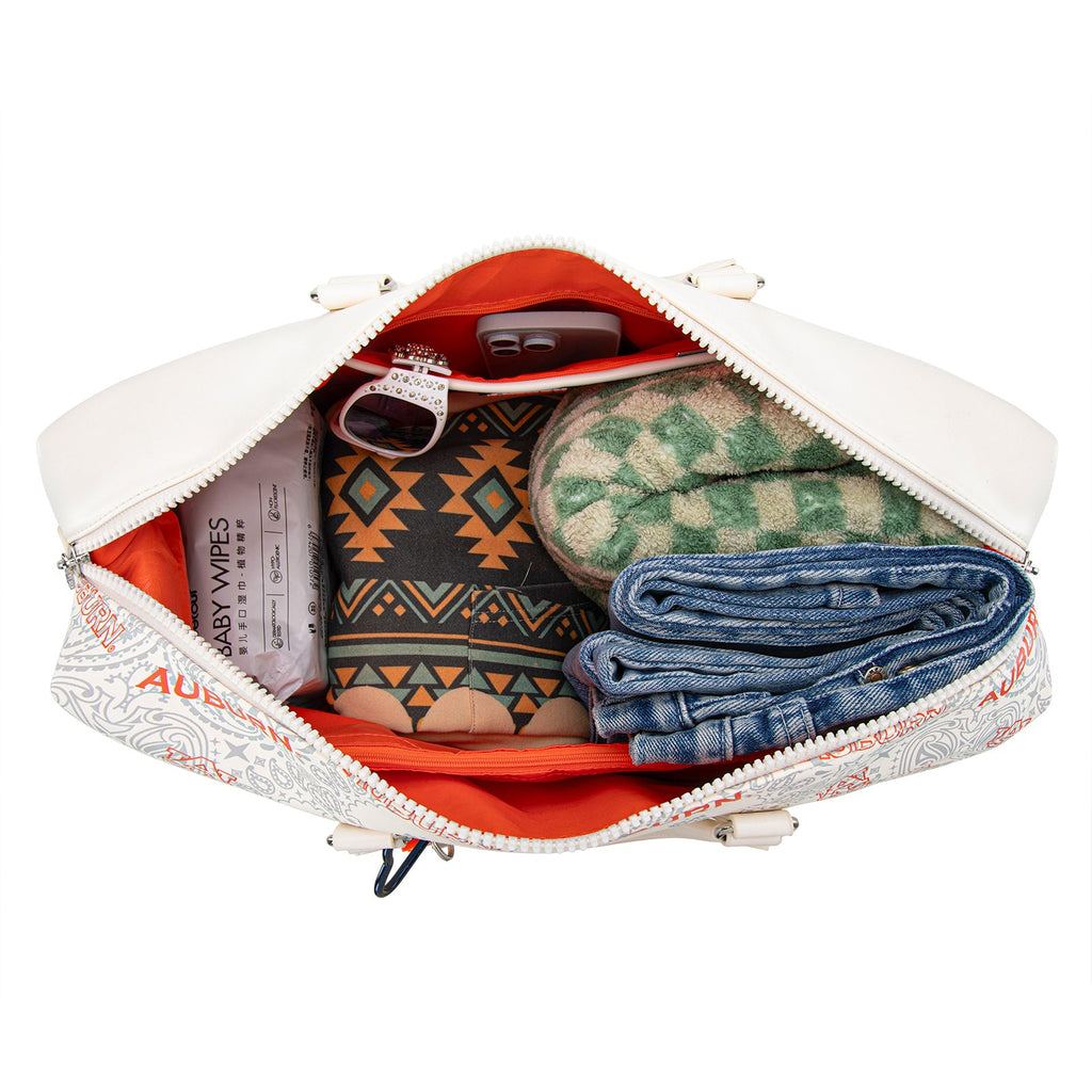 - A zippered pocket on the back/ back pocket sleeve slides over rolling luggage handles.