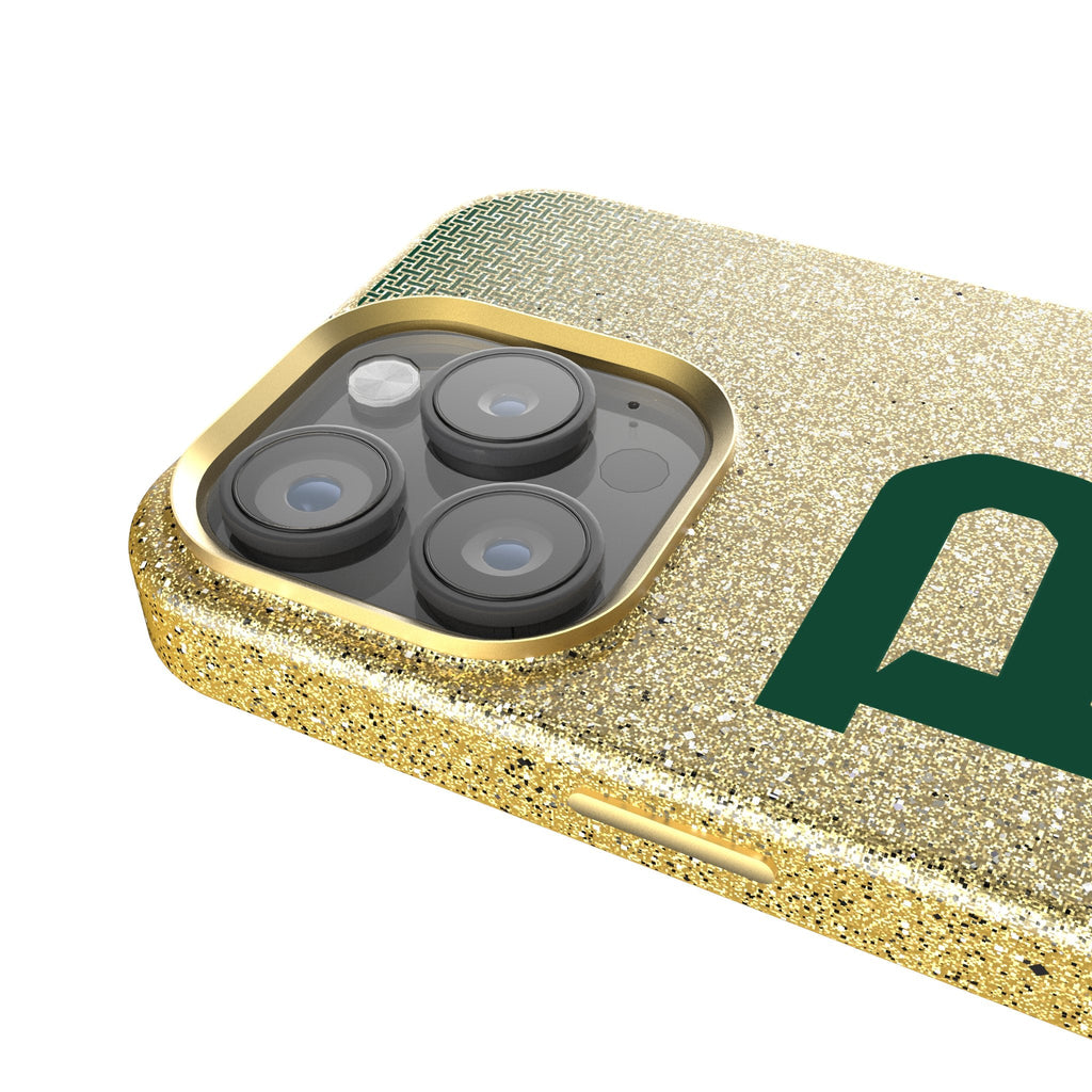This gold, sparkly case with a microfiber interior is officially-licensed and MagSafe compatible. It provides fun and protection to your cell phone. Designed and decorated by Keyscaper in Tualatin, Oregon, USA., this case is exciting and durable. It has precise speaker and port cutouts, easy press buttons, and a raised lip around the screen and camera lens to provide extra protection against accidental bumps and scratches.