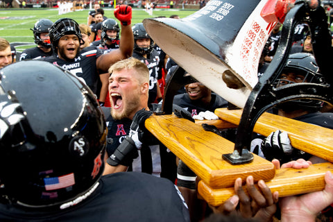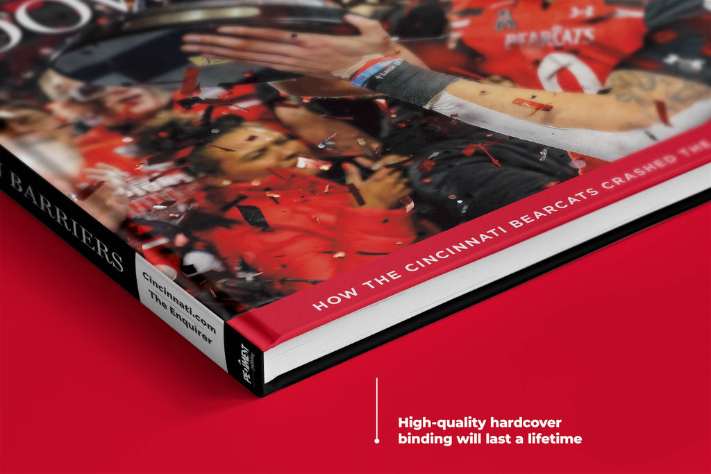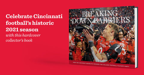 Commemorate the Bearcats’ historic season with this hardcover collector’s book. From a perfect regular-season record to UC’s College Football Playoffs berth — the first non-Power Five team to accomplish this feat — get the inside story of Cincinnati’s incredible run to shake up college football in 2021. This 160-page book includes coverage of regular season, AAC championship, and playoffs, and is sure to delight Bearcats fans everywhere.