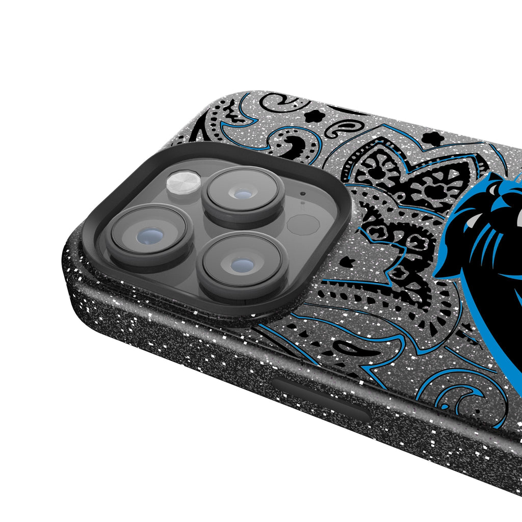 This black, sparkly case with a microfiber interior is officially-licensed and MagSafe compatible. It provides fun and protection to your cell phone. Designed and decorated by Keyscaper in Tualatin, Oregon, USA., this case is exciting and durable. It has precise speaker and port cutouts, easy press buttons, and a raised lip around the screen and camera lens to provide extra protection against accidental bumps and scratches.