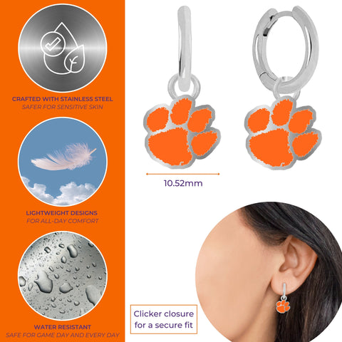 The Ultimate Fit: These stainless steel Clemson Tigers huggie hoop earrings provide all-day comfort and timeless style. Showcase your pride for the Clemson Tigers with these elegant earrings, perfect for representing your school and team. Their delicate design makes them ideal for any occasion