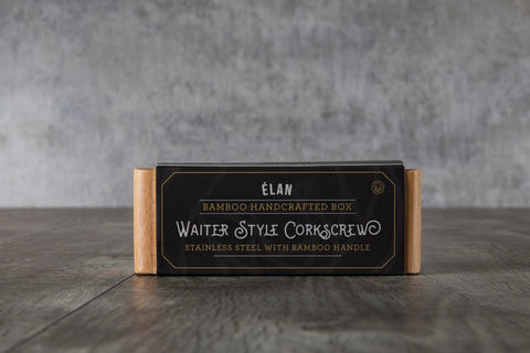 It's the details that make the difference - The Elan Corkscrew is a stainless steel waiter-style corkscrew with an eco-friendly bamboo handle and bamboo box with a hinged door. No more fishing around in your drawer for the wine opener, this corkscrew set sits elegantly on your bar top for your guests to admire.