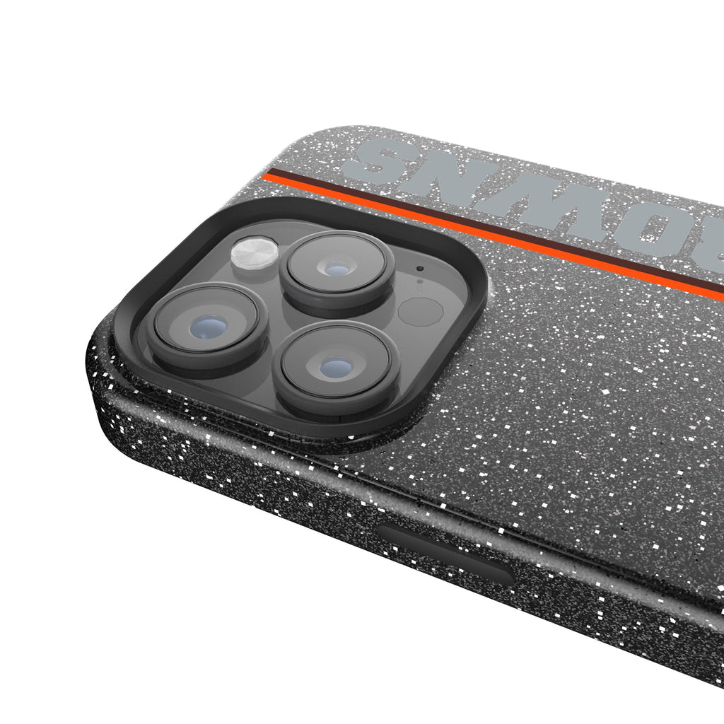 This black, sparkly case with a microfiber interior is officially-licensed and MagSafe compatible. It provides fun and protection to your cell phone. Designed and decorated by Keyscaper in Tualatin, Oregon, USA., this case is exciting and durable. It has precise speaker and port cutouts, easy press buttons, and a raised lip around the screen and camera lens to provide extra protection against accidental bumps and scratches.