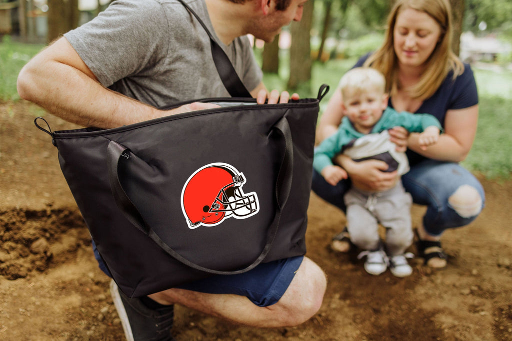 From a day at the beach to the grocery to snack parent at the soccer game to picnic parties, you can fit all the beverages you need and keep them cool and refreshing in the fully insulated Cleveland Browns Tarana Cooler Tote Bag. Fashion meets function in this roomy and stylish soft cooler tote with full-length zipper closure and front zippered accessory pocket - but there’s an even more special detail! Each one of these large-and-in-charge insulated beach bags has a shell made of 15 recycled water bottles. Helping save the earth never looked so good.