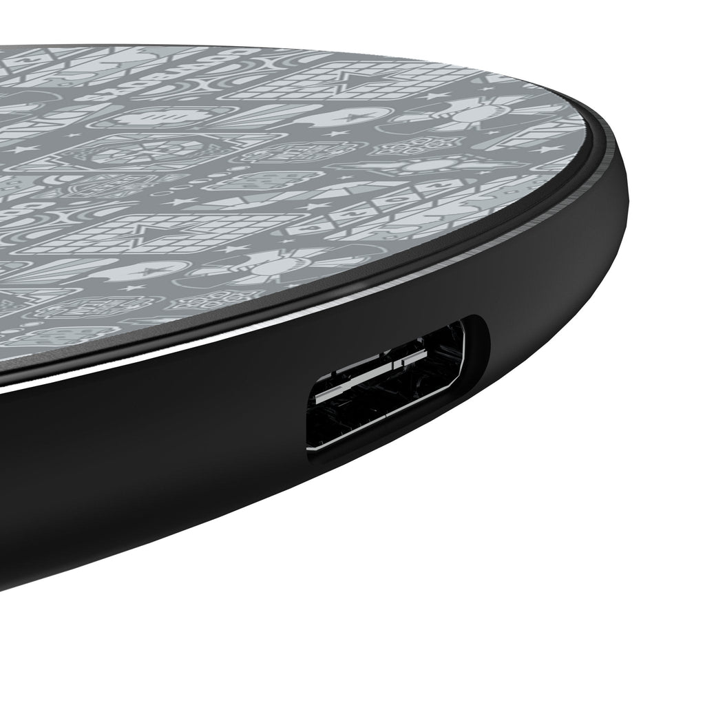 Make the most of your Qi-enabled devices with this officially licensed, Wireless Charging Station with durable full color printed design of your favorite character or sports team. Packing a powerful 15-Watt quick charge, this base station is small enough to fit anywhere you need to wirelessly charge your Qi-enabled phone. Excellent solution for desktop, nightstand, kitchen or wherever you charge your phone. Designed and decorated by Keyscaper in Tualatin, Oregon, USA.