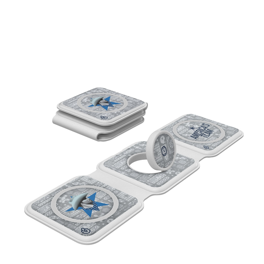 Eliminate cable clutter on your desk, night stand and travel with ease. The 3 in 1 folding charging station is small enough to fit in your pocket yet has room for all your mobile items with only one cord to plug in. Use this charging station to simultaneously charge your iPhone, airPods and Apple watch when pluggged in to a minimum 20 Watt wall charger.
