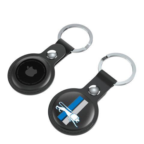 This officially-licensed black leatherette AirTag holder with key ring is a must have for all fans. Comes in a 2-pack, so you can show your fan spirit on multiple keyrings or match with your buddy. Designed to fit seamlessly with your AirTag, these holders add a vibrant touch to your keychain, bag, backpack, pet collar, suitcase and more. These premium leatherette holders with full color print not only shield your AirTags but also proudly showcases your favorite officially-licensed design. Designed and decorated by Keyscaper in Tualatin, Oregon, USA.