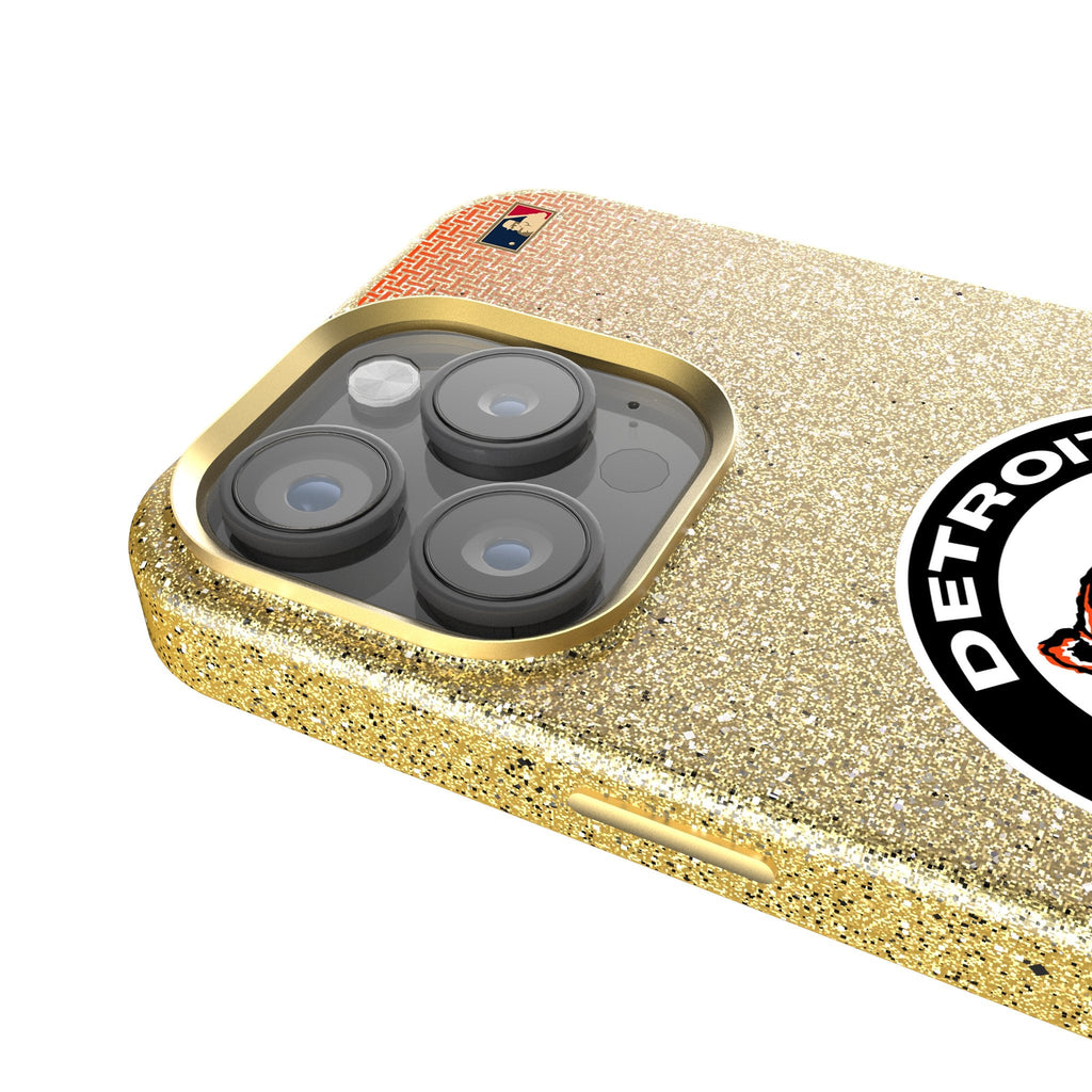 This gold, sparkly case with a microfiber interior is officially-licensed and MagSafe compatible. It provides fun and protection to your cell phone. Designed and decorated by Keyscaper in Tualatin, Oregon, USA., this case is exciting and durable. It has precise speaker and port cutouts, easy press buttons, and a raised lip around the screen and camera lens to provide extra protection against accidental bumps and scratches.