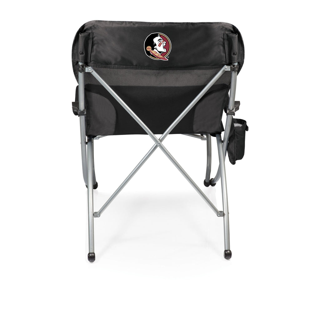Even if you're not a linebacker, you'll enjoy the extra room of the Florida State Seminoles PT-XL Heavy Duty Camping Chair, an outdoor chair with an extra-wide polyester canvas-constructed seat in a durable ripstop weave. This XL camp chair also features a breathable backing, padded armrests, a hanging beverage pocket, and a sturdy, powder-coated steel frame that folds inward to fit in a drawstring carrying bag with shoulder strap. This big and tall folding beach chair is the perfect place to post up for a day at the beach, camping, picnicking, or on your porch! With a high weight capacity of 400lbs, this outdoor folding chair is the heavy duty choice for secure comfort on the go. Made especially for big men and women, this plus size beach chair is comfortable, portable, and affordable - a real XXL dream!