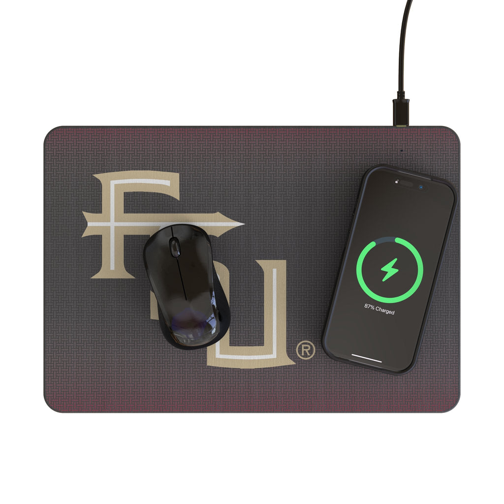 Florida State University Seminoles Athletic Wordmark Linen 15-Watt Wireless Charger and Mouse Pad