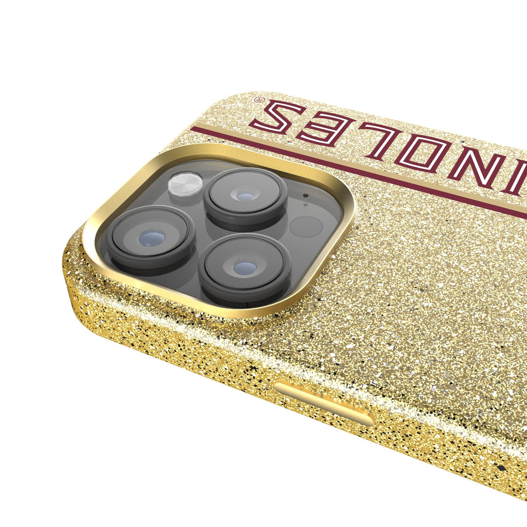 This gold, sparkly case with a microfiber interior is officially-licensed and MagSafe compatible. It provides fun and protection to your cell phone. Designed and decorated by Keyscaper in Tualatin, Oregon, USA., this case is exciting and durable. It has precise speaker and port cutouts, easy press buttons, and a raised lip around the screen and camera lens to provide extra protection against accidental bumps and scratches.