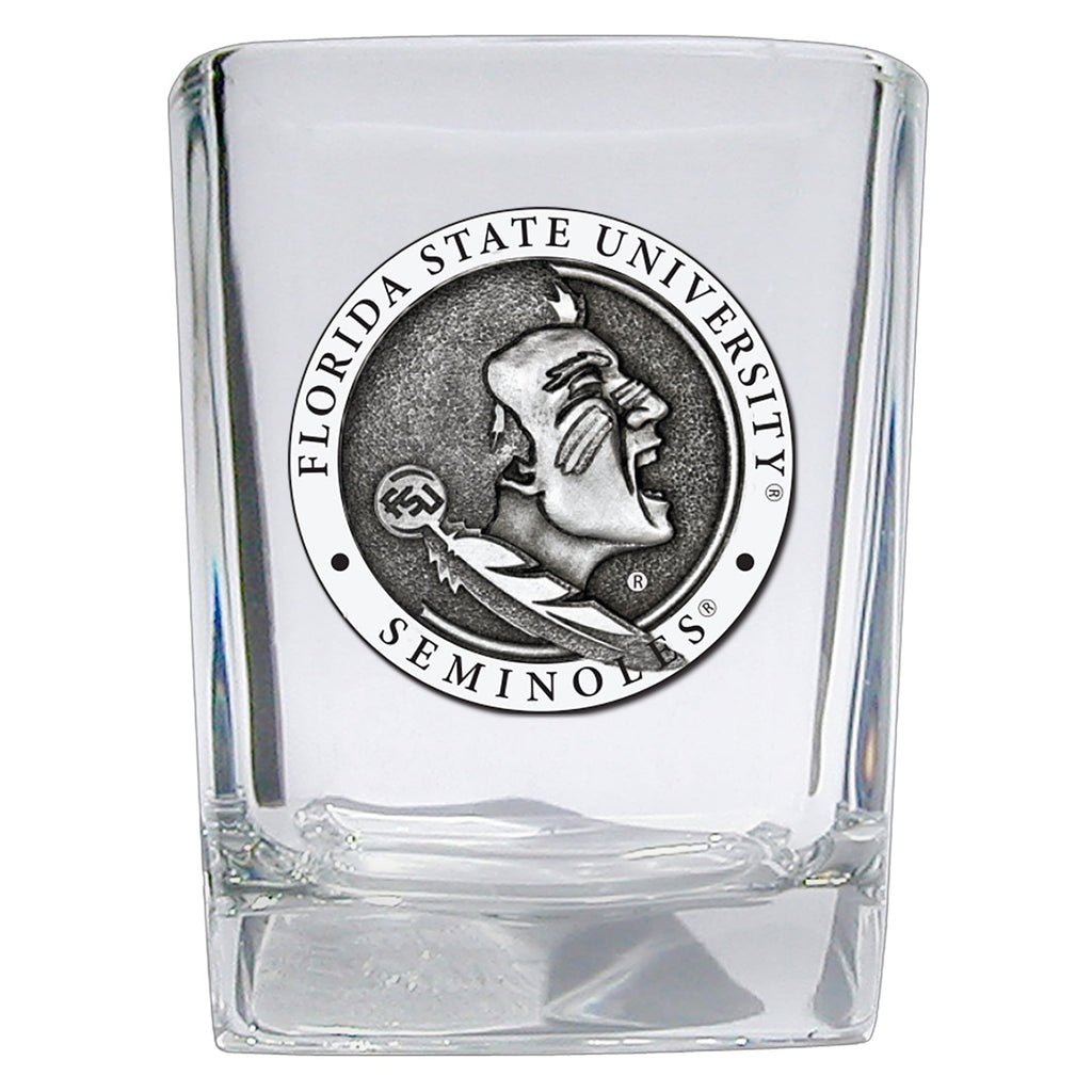 This 1.5 ounce square shot glass is highlighted with a fine pewter casting. Made in USA.