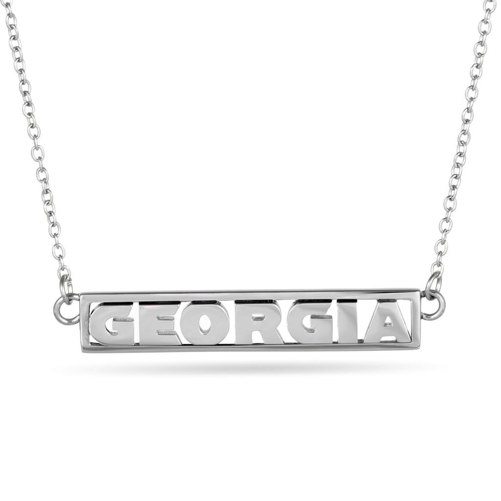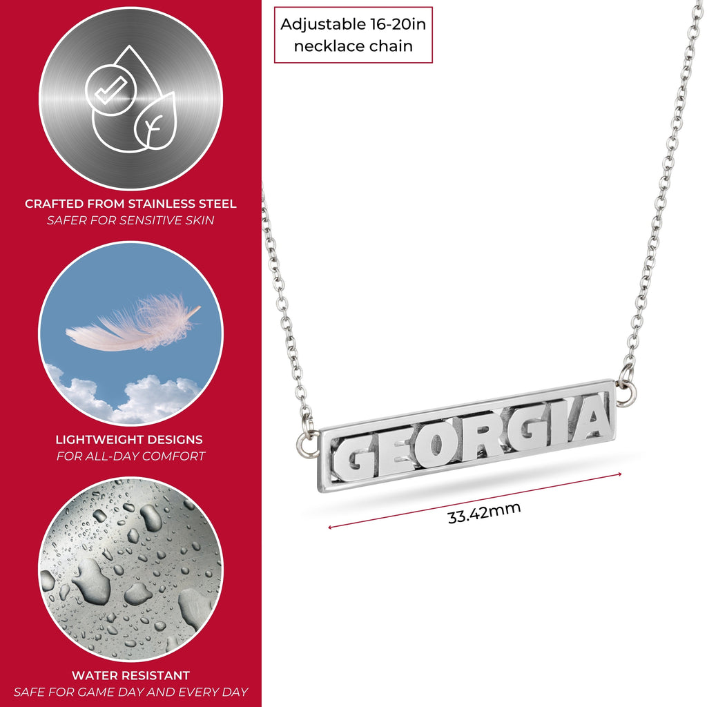 - YOUR PERFECT FIT: This stainless steel Georgia necklace is adjustable in size, with a chain that adjusts between 16-20 inches. Add this classic Georgia necklace to show off your beloved Georgia Bulldogs school and team. The GEORGIA lettering measures 6.30mm tall by 33.42mm wide.