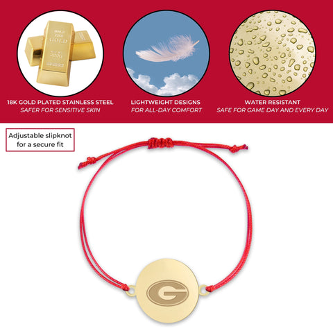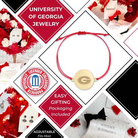 - Sport your Bulldog Spirit in Style with this Exquisitely Crafted Georgia Bracelet : Treasure your Georgia Bulldog Spirit with this Georgia adjustable cord bracelet for women and men; this University of Georgia bracelet features a 18K gold plated stainless steel G logo coin on a red cord bracelet