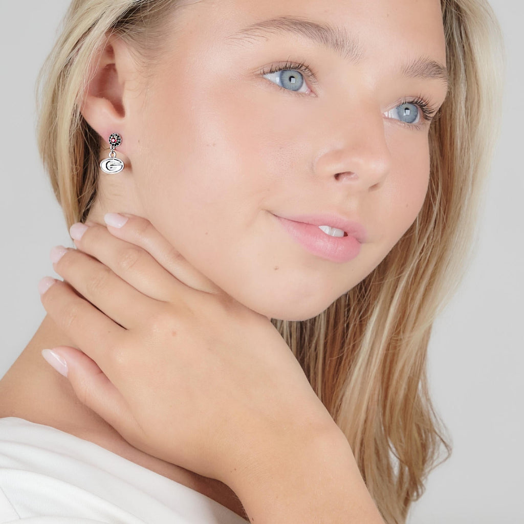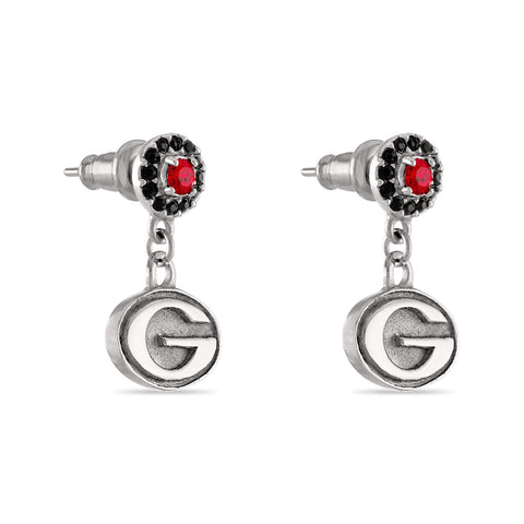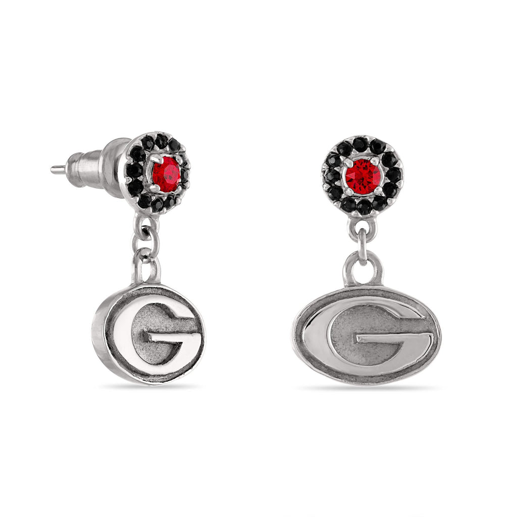 - Treasure Your Georgia Bulldogs Spirit - These Stone Armory UGA earrings are full of Bulldog pride! Featuring a stainless steel Georgia football logo dangling from sparkling red and black crystals, these women's earrings are just as unique as you.
