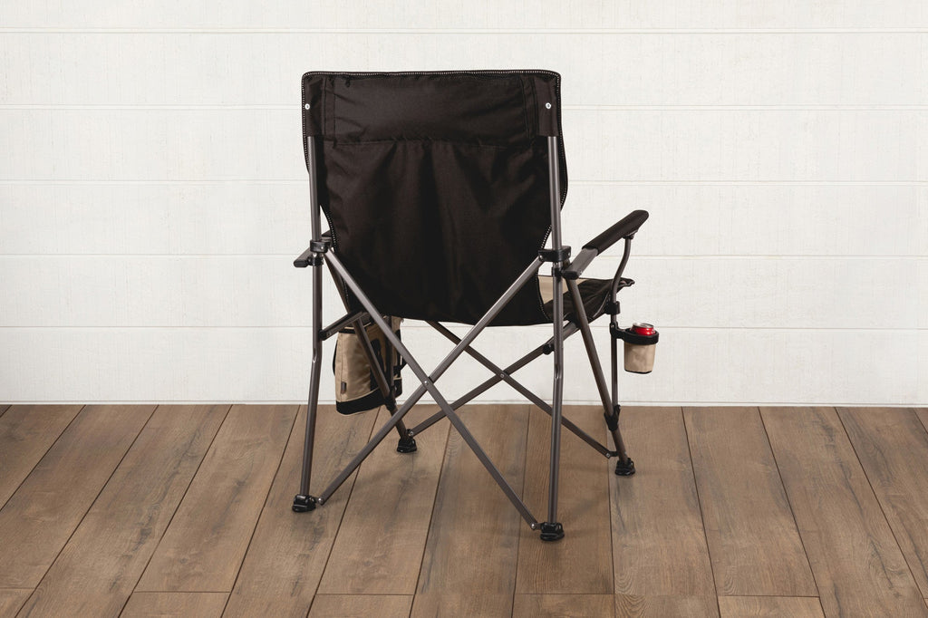 For those of us who are both large and in charge, the Big Bear XL Camp Chair with Cooler is the gold standard of heavy duty folding chairs. Any size person will enjoy the extra room of this plus size adult beach chair with a steel frame, hinged feet for stability on uneven terrain, durable polyester construction, and zippered security pocket behind the headrest. This XL lawn chair also sports a 9-can-capacity cooler bag and drink holder that can attach to the chair. When it’s time to hit the road, easily pack this heavy duty outdoor folding chair into the drawstring tote with a shoulder strap. Show off your team spirit everywhere you go with this chair, adorned with your favorite team's logo across the back. Easy to get in and out of and rated for a high weight capacity of 500 lbs, this is the perfect folding chair for big & tall folks to take to the beach, camping, picnicking, and tailgating!