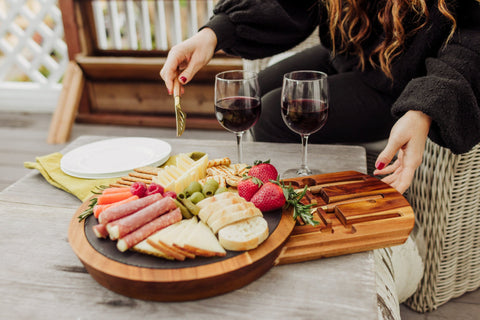 With a nod to sleek Danish design, the Houston Texans Insignia Acacia and Slate Serving Board with Cheese Tools marries centerpiece-worthy shape and color with ingenious function. The removable slate serving tray rests atop a durable acacia 9.5 inch wood cheese cutting board base. A hidden notch on the side of this cheese board set opens a drawer that holds three cheese tools in gold titanium-coated stainless steel with wood handles. This multipurpose board pulls quadruple duty as a cutting board, serving board, cheese set, and design-forward dynamo. Level up your next dinner party with this complete charcuterie and serving set.
