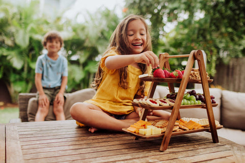 At once space-saving and stylish, the Serving Ladder is a 3-tiered serving station with small, medium, and large removable trays set on a collapsible ladder. Made of Natural Acacia, this serving set is the perfect centerpiece for picnics and wine & cheese tastings! The classy layout will especially wow the guests at your next dinner party or family get together.