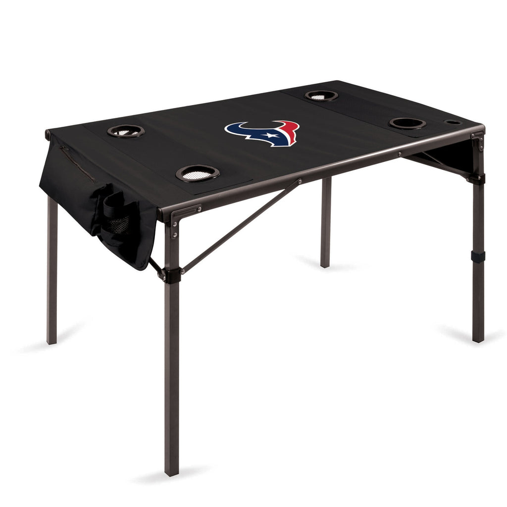 Get everything out on the table with the Houston Texans Travel Table Portable Folding Table, the ultimate compact folding table for camping, tailgating, beach days, picnics at the park and bbqs. High quality components include a sturdy polyester canvas skin that stretches over a durable, powder-coated steel frame. The frame folds inward to pack easily into a drawstring bag with a shoulder strap. Four sunken drink holders in the table top, two pouch drink holders on the sides, and a hanging, zippered pouch for personal items, plus a beach umbrella hole for build-in shade make this our downright favorite camping table. With this portable card table at the ready, you’ll always be prepared to make the world your picnic buffet.