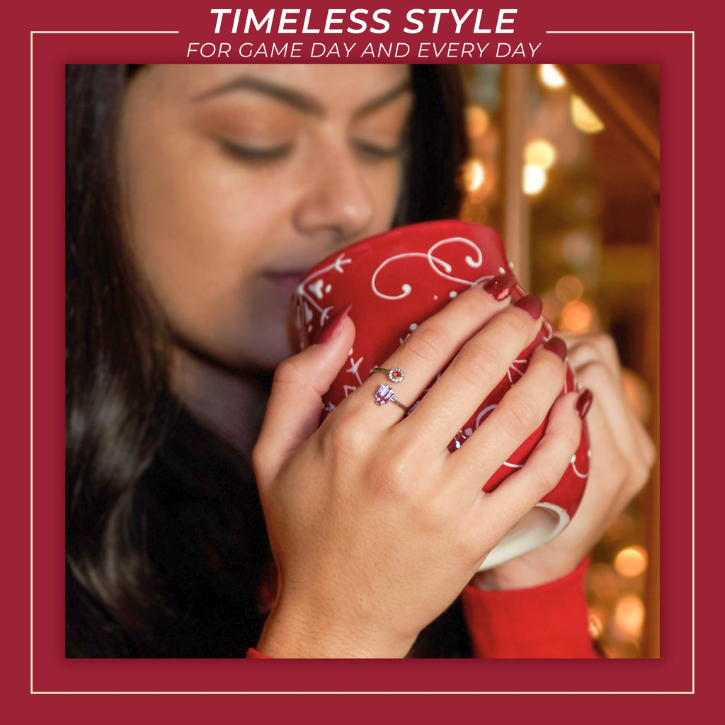 Stone Armory's Indiana ring is finally here! Gear up for the game with our beautifully designed Indiana Hoosiers ring! Wear it to the next tailgate or around town to show off your Indiana University pride. This adjustable ring would also make the perfect Indiana gift for your favorite Indiana Hoosiers fan! The Indiana logo is accented by sparkling crimson and clear crystals. Stone Armory's jewelry is made of stainless steel and is adjustable in size, making this NCAA Indiana ring the perfect gift to celebrate Indiana graduation, birthdays, Mother's Day, first day of school, the first game, or for everyday fan wear. Thank you for supporting our small business!