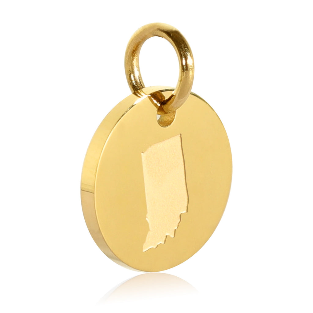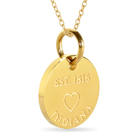 Indiana Map Engraved Charm Necklace - 18K Gold Plate