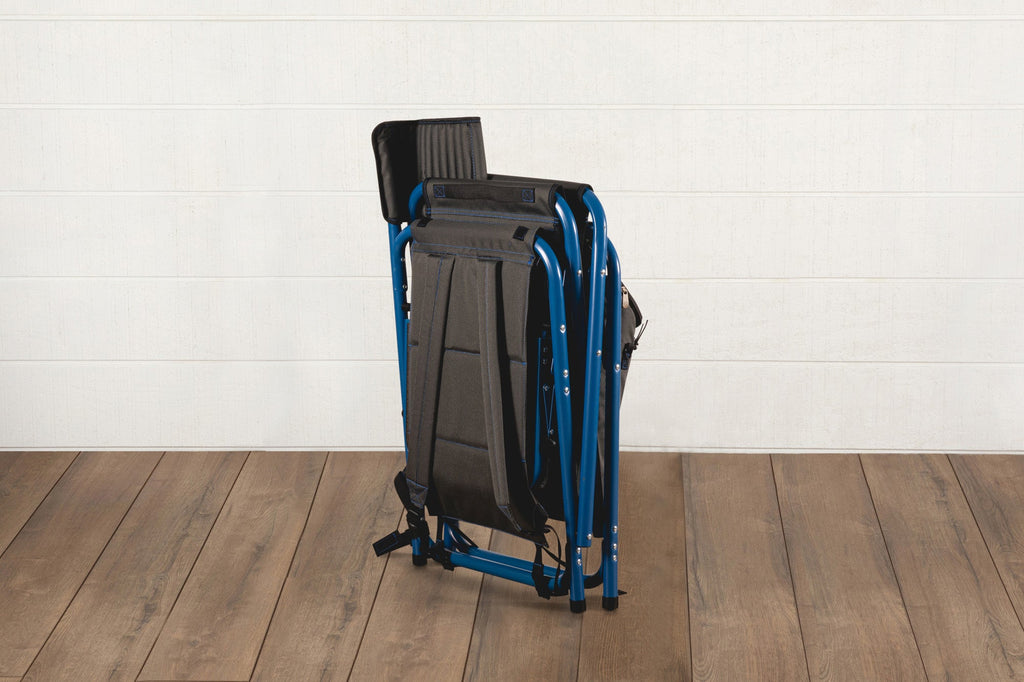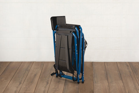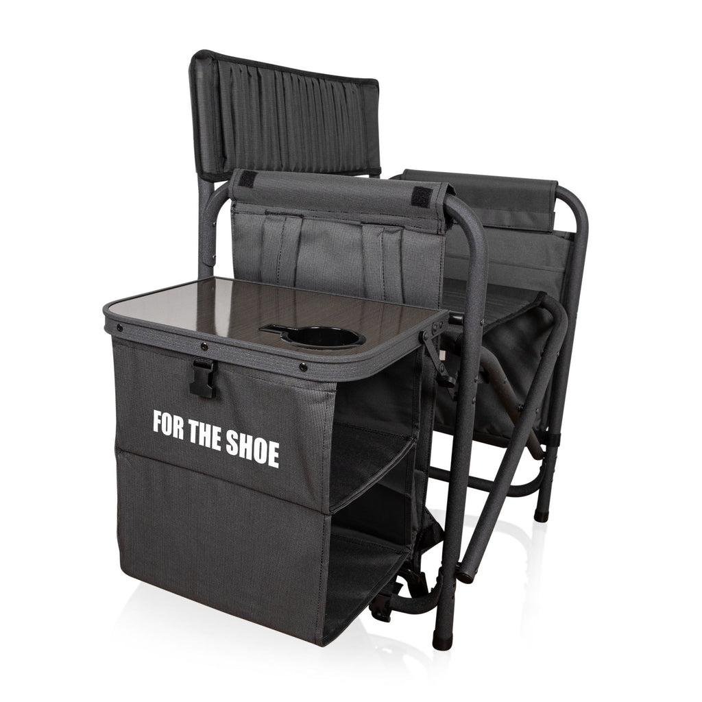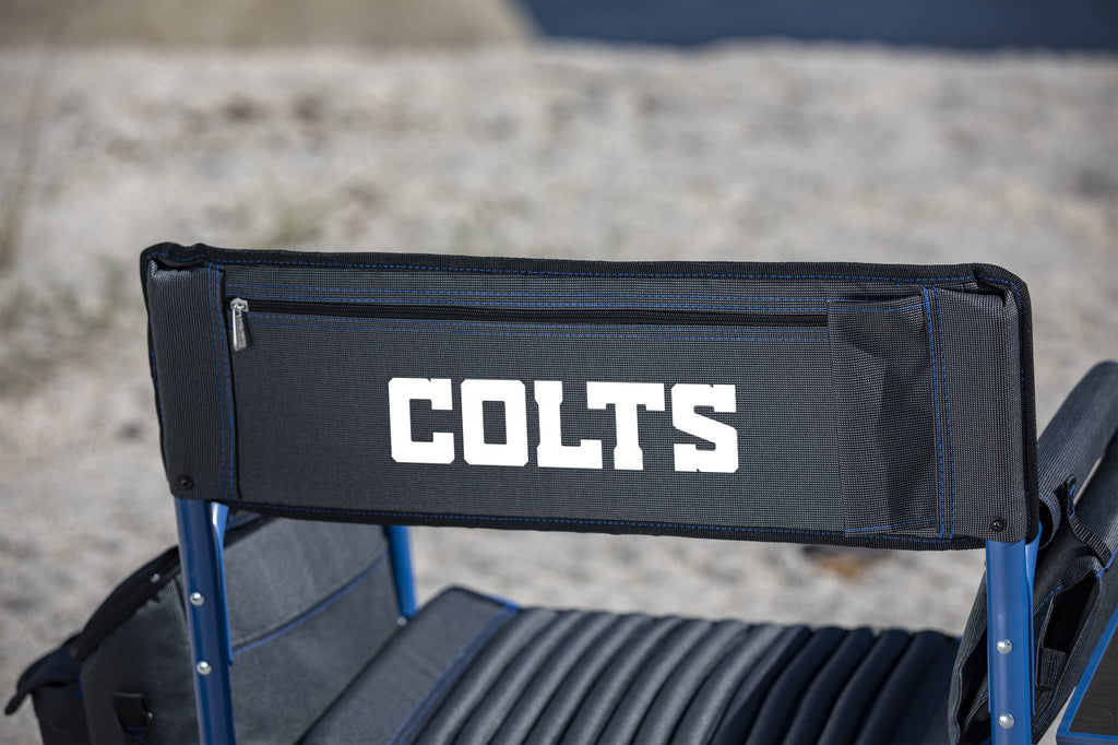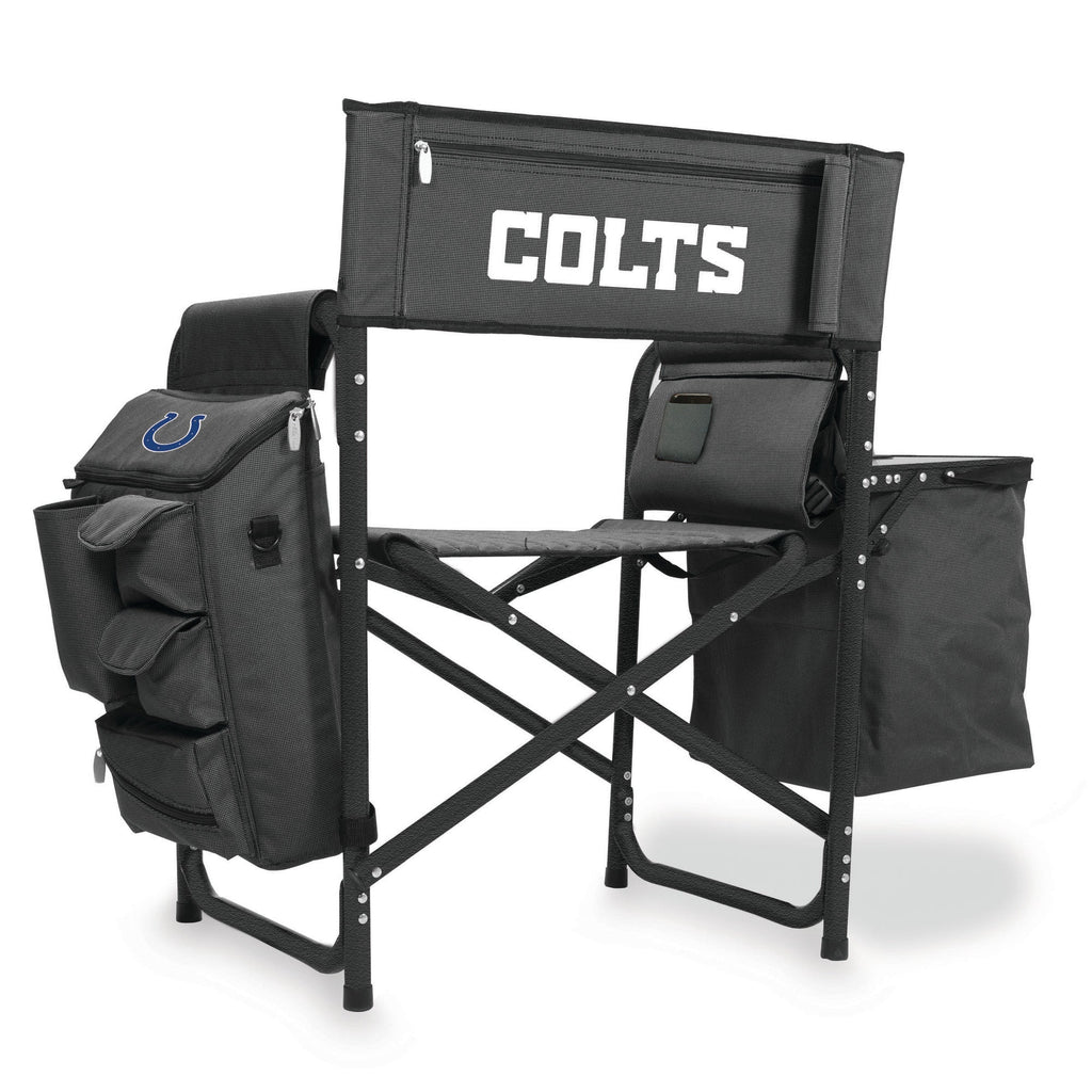The Indianapolis Colts Fusion Camping Chair is a heavy duty portable camp chair with so many features, you might make it your new office! A durable, powder-coated aluminum frame and ribbed padding in the seat and back rests is only the beginning - this outdoor chair with table on the right side also includes a two-tiered, accordion-style shelves hanging below, plus a side-mounted, fully-detachable 24+1-can-capacity cooler with its own backpack straps, a cell-phone-specific pocket, specialized fabric loops for an umbrella or sports banner, and numerous pockets. Show off your team spirit everywhere you go with this chair, adorned with your favorite team's logo across the back and cooler. The Fusion is more than an outdoor portable chair, it's a camp chair, a beach chair, and heck - a lawn chair relaxation throne. All that and it’s still lightweight enough to be easily portable yet strong enough to hold up to 350 lbs?! This is an outdoor directors chair that never disappoints.