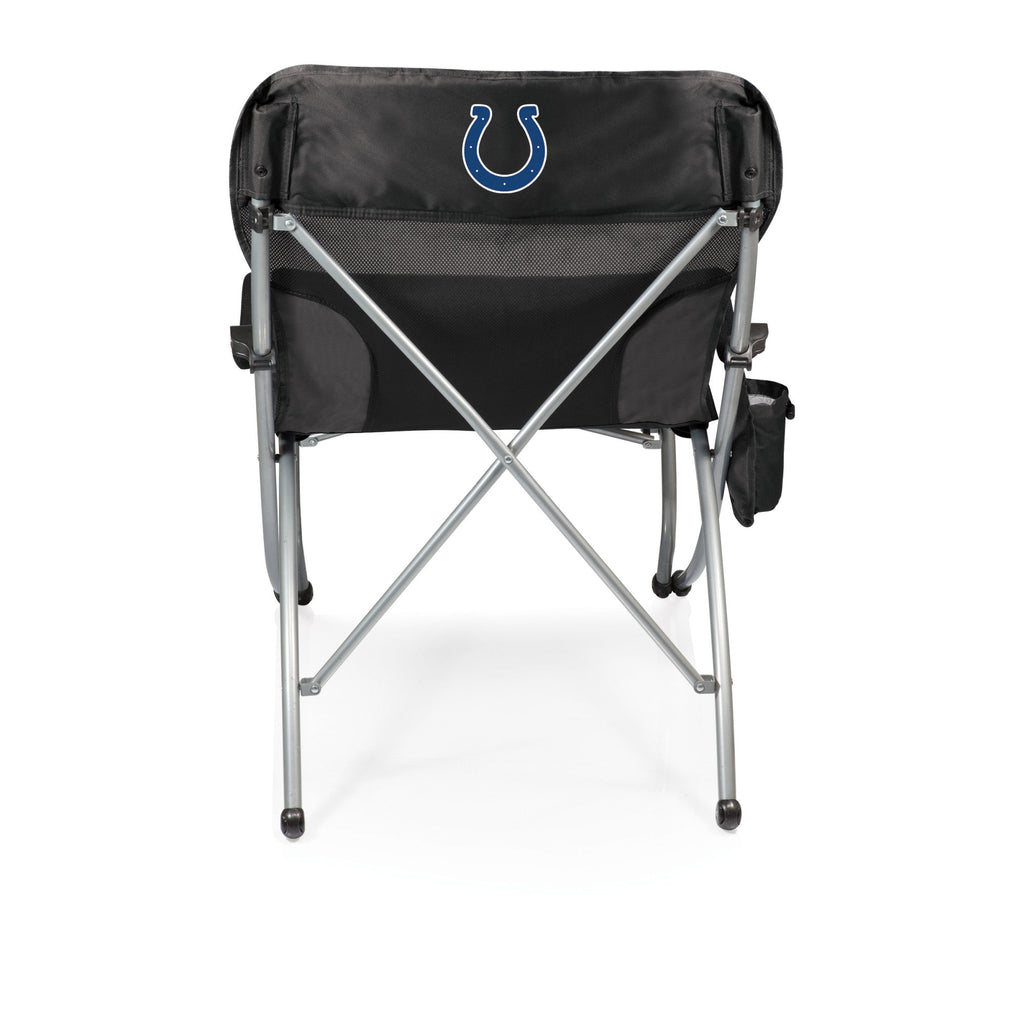 Even if you're not a linebacker, you'll enjoy the extra room of the Indianapolis Colts PT-XL Heavy Duty Camping Chair, an outdoor chair with an extra-wide polyester canvas-constructed seat in a durable ripstop weave. Show off your team spirit everywhere you go with this chair, adorned with your favorite team's logo across the back. This XL camp chair also features a breathable backing, padded armrests, a hanging beverage pocket, and a sturdy, powder-coated steel frame that folds inward to fit in a drawstring carrying bag with shoulder strap. This big and tall folding beach chair is the perfect place to post up for a day at the beach, camping, picnicking, or on your porch! With a high weight capacity of 400lbs, this outdoor folding chair is the heavy duty choice for secure comfort on the go. Made especially for big men and women, this plus size beach chair is comfortable, portable, and affordable - a real XXL dream!