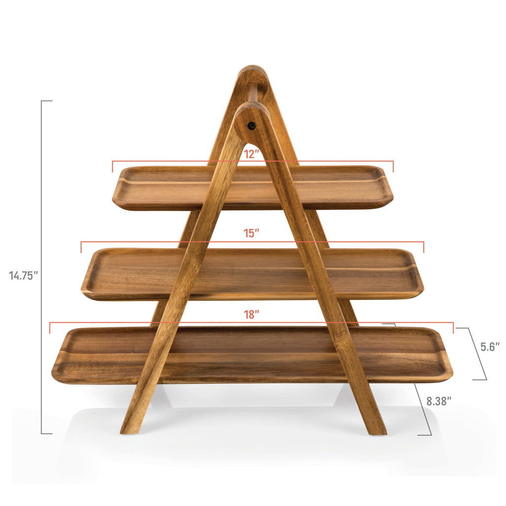 At once space-saving and stylish, the Serving Ladder is a 3-tiered serving station with small, medium, and large removable trays set on a collapsible ladder. Made of Natural Acacia, this serving set is the perfect centerpiece for picnics and wine & cheese tastings! The classy layout will especially wow the guests at your next dinner party or family get together.