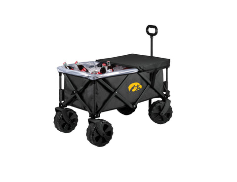 Save your back on and off road with the Adventure Wagon Elite All-Terrain Folding Beach Wagon with Big Wheels plus Table Top Lid & Soft Cooler Liner, a sturdy utility wagon with endless uses, thoughtful accessories, and a rugged 225 weight capacity. With a powder-coated steel frame and durable two-tone polyester canvas for hauling everything you need, this all terrain luxury trolley can take you everywhere from beach picnics to camping to shopping for groceries at your local farmer’s market. The ultra big wheels make this garden wagon ideal for hikes, camping and any off road picnic adventures. This folding wagon packs away compactly, sets up easily, and has a telescoping handle for ease of use. A zippered, hanging storage pocket inside the beach wagon cart is perfect for your phone and other delicate items. But wait - that’s not all! The food-safe PVC soft cooler liner features a drainage spout for melting ice so you can convert your outdoor folding wagon to a rolling cooler. Also included is a sturdy polyester-covered table top lid for tailgates and picnics anywhere. Is there anywhere this sport utility wagon can’t go?! Honestly...no!