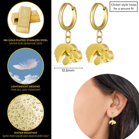 - The Ultimate Fit: These stainless steel Iowa huggie hoop earrings provide all-day comfort and timeless style. Showcase your pride for the Iowa Hawkeyes with these elegant earrings, perfect for representing your school and team. Their delicate design makes them ideal for any occasion
