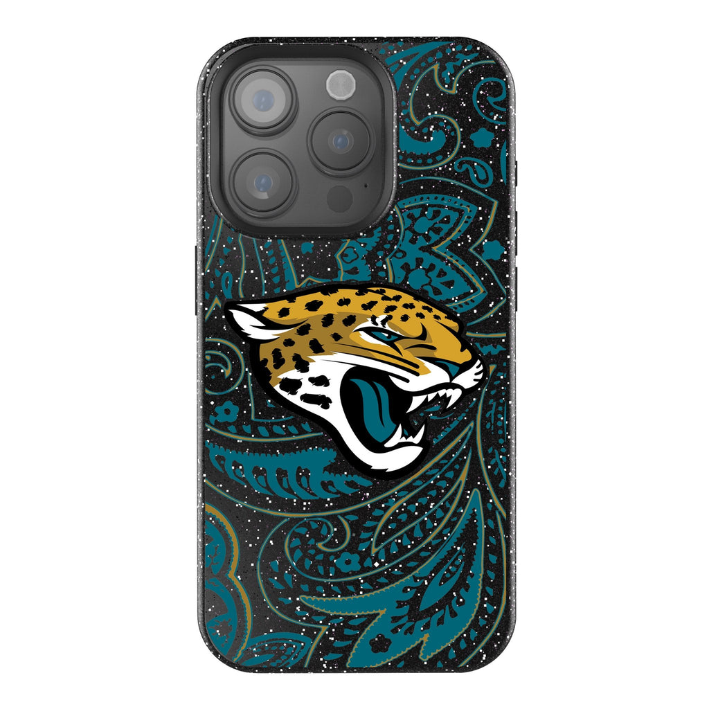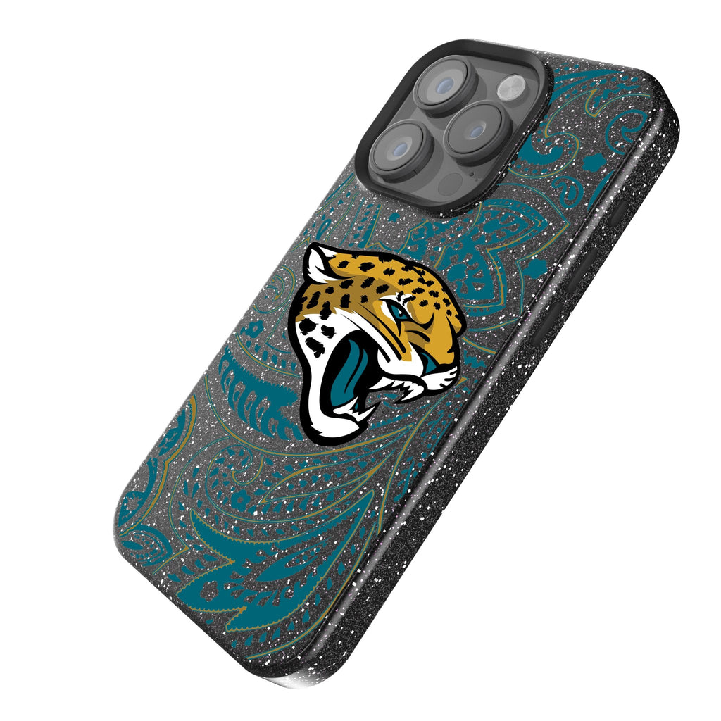 This black, sparkly case with a microfiber interior is officially-licensed and MagSafe compatible. It provides fun and protection to your cell phone. Designed and decorated by Keyscaper in Tualatin, Oregon, USA., this case is exciting and durable. It has precise speaker and port cutouts, easy press buttons, and a raised lip around the screen and camera lens to provide extra protection against accidental bumps and scratches.
