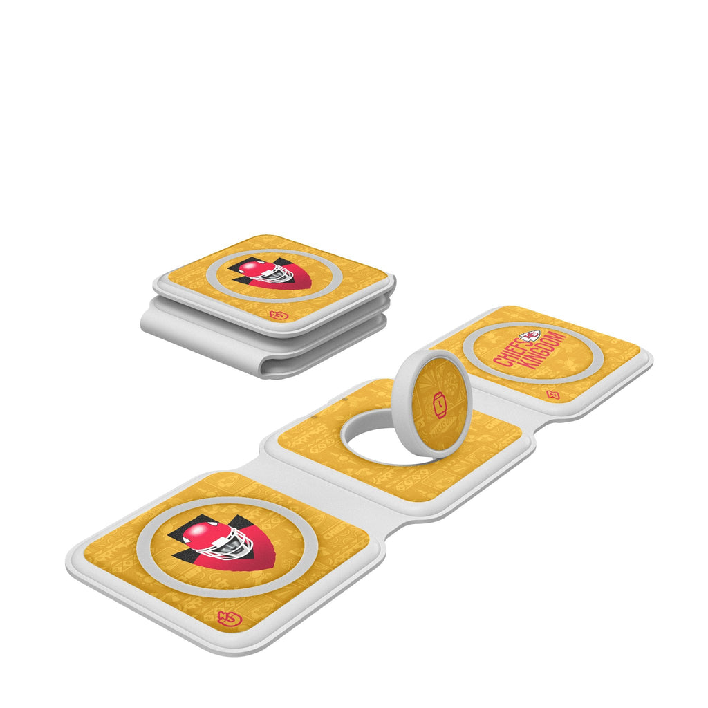 Eliminate cable clutter on your desk, night stand and travel with ease. The 3 in 1 folding charging station is small enough to fit in your pocket yet has room for all your mobile items with only one cord to plug in. Use this charging station to simultaneously charge your iPhone, airPods and Apple watch when pluggged in to a minimum 20 Watt wall charger.