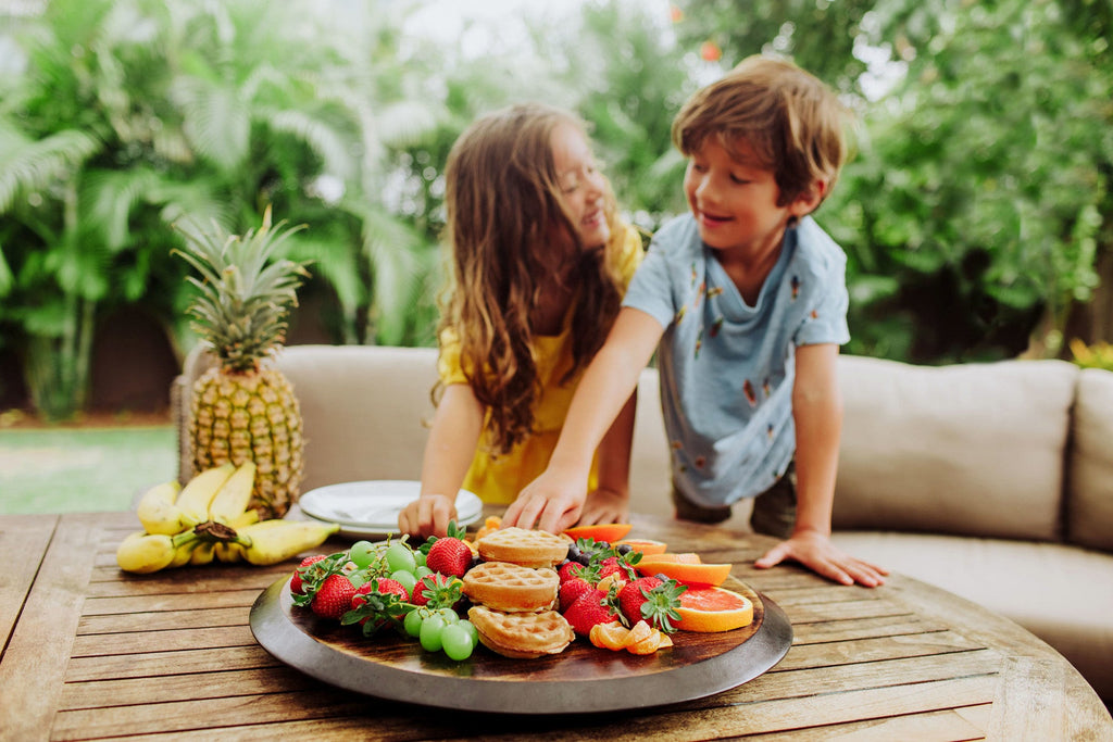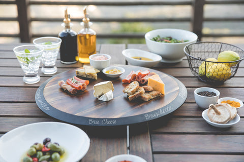 The centerpiece of every fine cocktail hour or wine & cheese tasting, the Lazy Susan is a circular, rotating serving tray made of fired acacia with a 1" tall chalkboard rim and included soapstone pencil for easy labeling. Your guests will love your presentation with this modern and refined serving platter.
