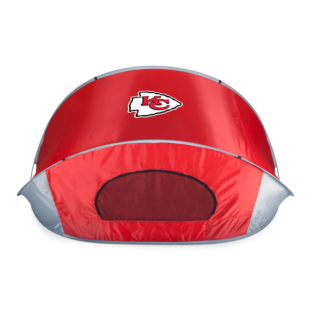 The Kansas City Chiefs Manta Portable Beach Tent is your own pop up cove, shielding you from the elements with a lightweight yet durable polyester shell. When the beach is calling, make sure to take the essentials – like this easy set up beach shelter to keep the sun from frying your skin. This sporty pop-up tent has serious benefits, like a UPF rating of 50+ for sun protection. Simply pop open this fully assembled tent, secure it with the plastic ground stakes or attached fillable sandbags, and Voila! Sunshade in the great outdoors. Plus, the heavy-duty floor keeps you grounded with a water-resistant, easy-to-clean surface for sand-free picnics. It’s more than a tent and it’s the perfect alternative to your standard beach umbrella - it’s the Manta!