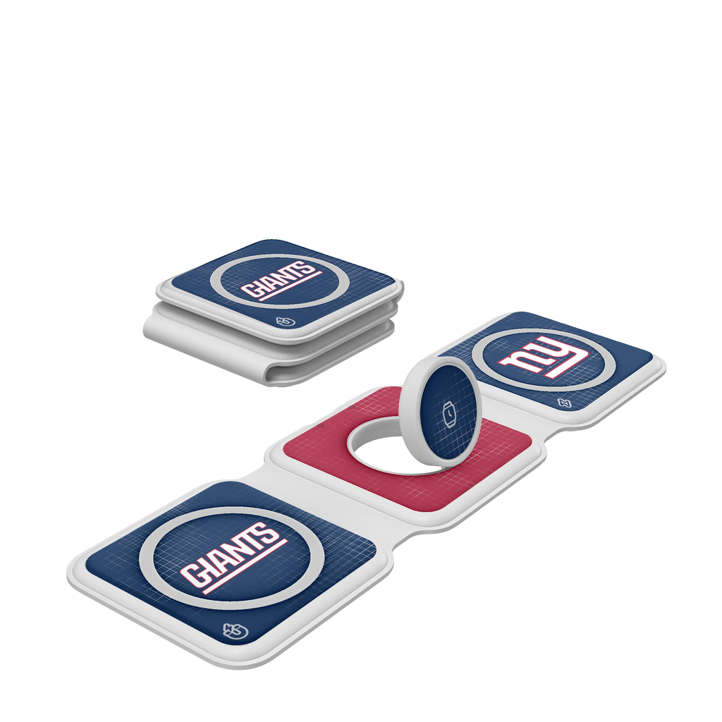 Unsubscribe from cable clutter and travel with ease. The New York Giants 3 in 1 folding charging station is small enough to fit in your pocket yet has room for all your mobile items with only one thing to plug in. Display your New York Giants love wherever you go!