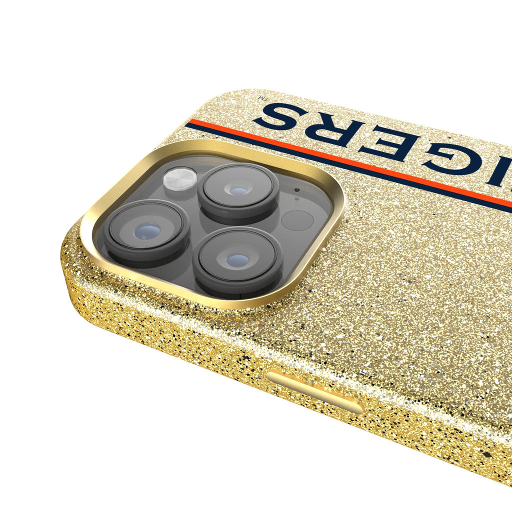 This gold, sparkly case with a microfiber interior is officially-licensed and MagSafe compatible. It provides fun and protection to your cell phone. Designed, decorated, and shipped from the keyscaper® factory in Tualatin, Oregon, this case is exciting and durable. It has precise speaker and port cutouts, easy press buttons, and a raised lip around the screen and camera lens to provide extra protection against accidental bumps and scratches.