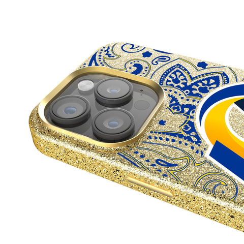 This gold, sparkly case with a microfiber interior is officially-licensed and MagSafe compatible. It provides fun and protection to your cell phone. Designed and decorated by Keyscaper in Tualatin, Oregon, USA., this case is exciting and durable. It has precise speaker and port cutouts, easy press buttons, and a raised lip around the screen and camera lens to provide extra protection against accidental bumps and scratches.