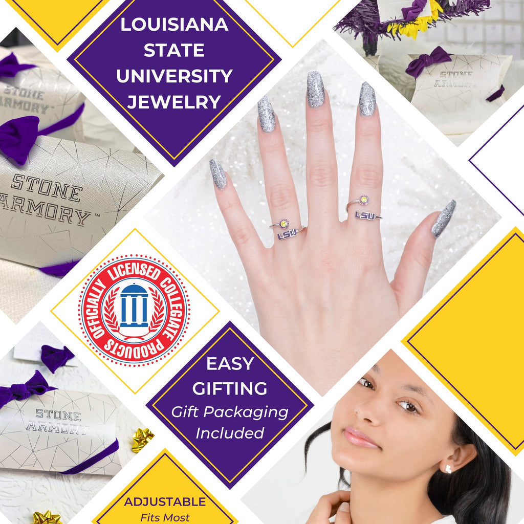 - 💜TREASURE YOUR Louisiana State Tigers SPIRIT: This Stone Armory Louisiana State University ring is officially licensed. A classic Louisiana State ring with purple and yellow crystals, to show off your LSU Tigers pride.