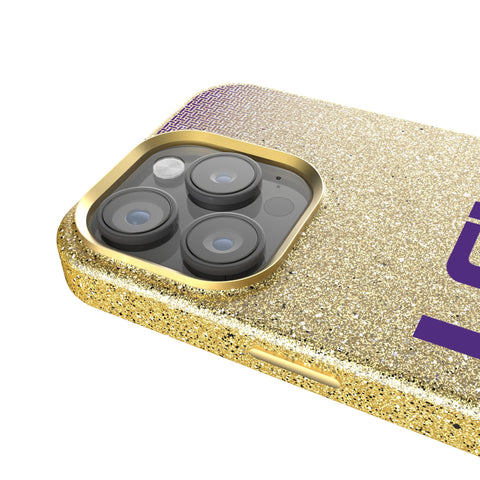 This gold, sparkly case with a microfiber interior is officially-licensed and MagSafe compatible. It provides fun and protection to your cell phone. Designed and decorated by Keyscaper in Tualatin, Oregon, USA., this case is exciting and durable. It has precise speaker and port cutouts, easy press buttons, and a raised lip around the screen and camera lens to provide extra protection against accidental bumps and scratches.